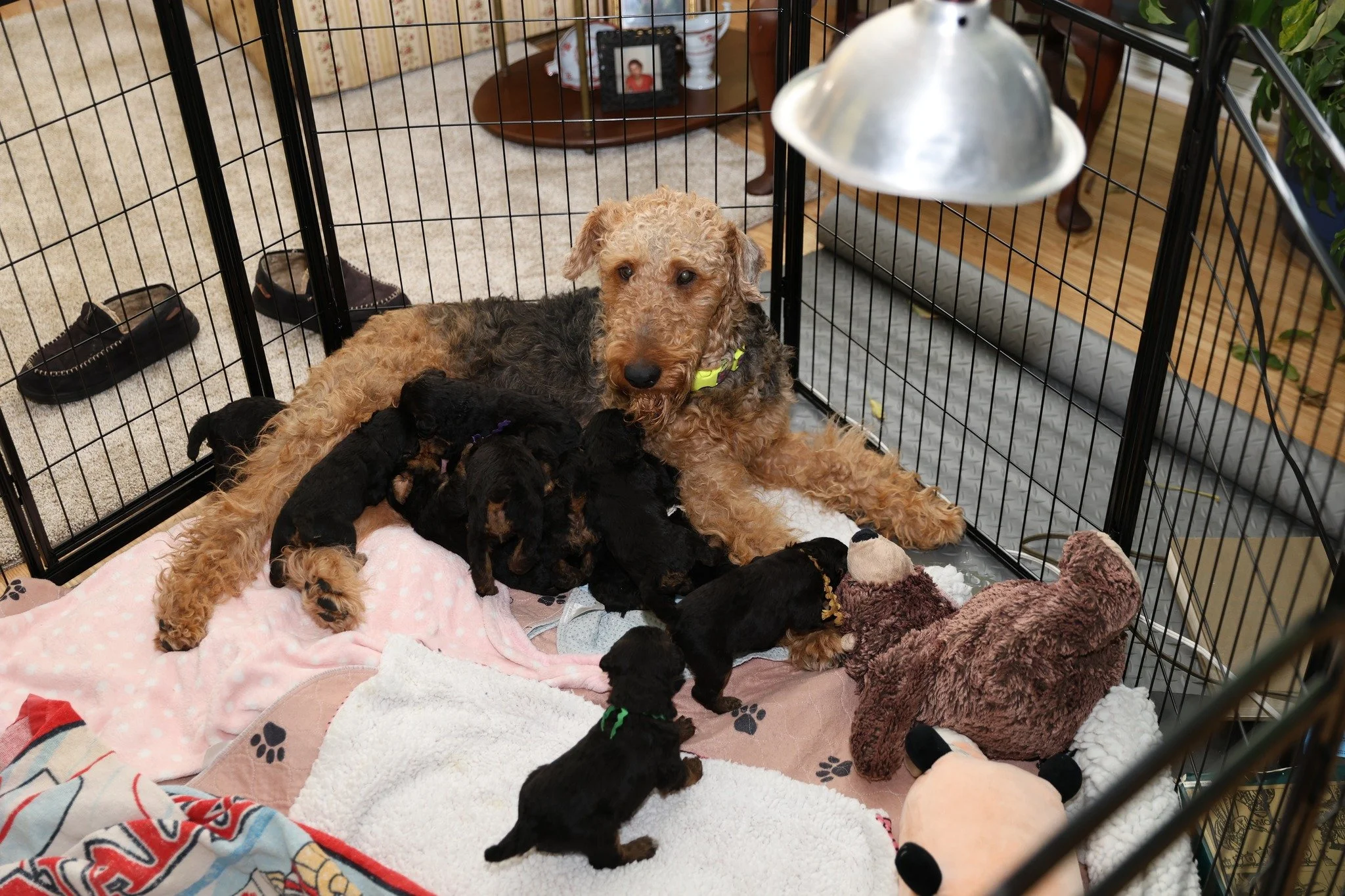 NEW DIGS! Jan 11 Written By Chuck Stone The pups have graduated from the whelping box to their new pen and Mama PepsiPlease approves! Chuck Stone